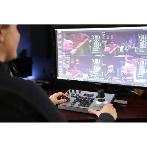 A PTZOptics Producer-SE kamera és vezérlő csomag egy komplett, azonnal használható többkamerás produkciós rendszert kínál tantermek, templomok, vállalati rendezvények és élő közvetítésekhez. Három szürke PTZOptics Move SE PTZ kamerát tartalmaz, amelyek mindegyike éles 1080p60 videofelvételt képes rögzíteni HDMI, 3G-SDI, USB-C vagy IP kapcsolaton keresztül, opcionális NDI|HX támogatással. A kamerák 20-szoros optikai zoommal, 16-szoros digitális zoommal, széles dinamikatartománnyal, kiváló gyenge fényviszonyok közötti teljesítménnyel és automatikus követéssel rendelkeznek, így kézmentesen, broadcast minőségben képesek mozgó előadókat vagy szónokokat rögzíteni. Akár 255 programozható beállítással rendelkeznek, és IP, RS-232, RS-485 vagy a mellékelt PT-JOY-G4 vezérlő segítségével azonnal válthatnak a különböző szögek között.