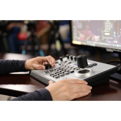 A PT-JOY-G4 joystick vezérlő intuitív, valós idejű vezérlést biztosít akár 255 kamerához IP-n keresztül, vagy akár hét kamerához soros kapcsolaton keresztül, támogatva a VISCA, VISCA-over-IP, Pelco-P, Pelco-D és ONVIF protokollokat. Pontos panoráma, dőlés, zoom, blende és fókusz beállításokat kínál, fehér egyensúly és expozíció vezérléssel, valamint kilenc gyors elérésű előre beállított értékkel a gyors váltáshoz. A vezérlő háttérvilágítású gombjai, LCD-kijelzője és PoE-képessége ideálisvá teszi gyenge fényviszonyok vagy komplex produkciós környezetekben. Ez a csomag összességében rugalmas, kezelőbarát megoldást kínál többkamerás sugárzáshoz és streaminghez.