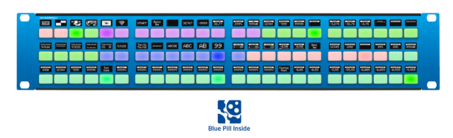A SKAARHOJ Rack Fly Trio with Blue Pill Inside egy kompakt, 2RU-s rackbe szerelhető műsorszórási vezérlőfelület, amely 72 programozható, négyirányú gombbal, RGB-megvilágítással és OLED-kijelzőkkel rendelkezik, és amelyet rugalmas, skálázható élő produkciós munkafolyamatokhoz terveztek.