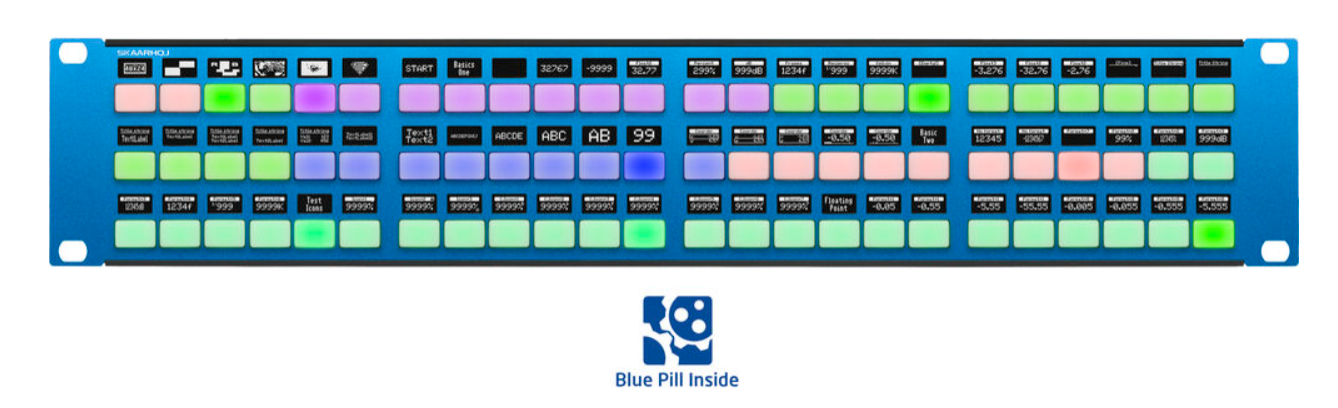 A SKAARHOJ Rack Fly Trio with Blue Pill Inside egy nagy sűrűségű, rackbe szerelhető vezérlőfelület, amelyet professzionális műsorszolgáltatási, élő produkciós és AV-vezérlési környezetekhez terveztek. A SKAARHOJ Blue Pill Inside architektúrájának köszönhetően a teljes feldolgozást közvetlenül a készülékbe integrálja, így külső vezérlőhardver nélkül is hatékony önálló működést tesz lehetővé.