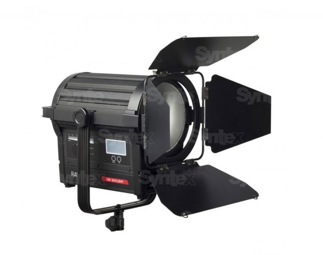 A fekete 7" 200W-os 200W-os Daylight LED Fresnel Light (Premium Pack) a Rayzr-től 200W (100W + 100W) teljes kimeneti teljesítményt kínál, és passzív gőzhűtő rendszert használ. Színhőmérséklete 5600K (nappali fény) és 18-50°-os sugárzási szöget kínál. A lámpa RJ45 DMX be / át vezérléssel és fedélzeti vezérlővel rendelkezik. A 7"-os LED Fresnel mellett a prémium csomag tartalmaz 4 szárnyas pajtaajtót, tápegységet és utazótáskát.