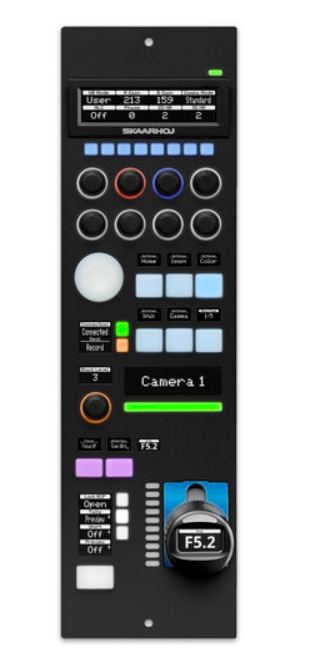 A rendszer középpontjában a SKAARHOJ Blue Pill Inside technológiája áll, amely a feldolgozást közvetlenül a vezérlőbe integrálja a rugalmas, önálló működés és a zökkenőmentes eszközintegráció érdekében. A panel tartalmaz egy OLED kijelzőt a valós idejű visszajelzéshez, egy beépített joystickot az intuitív paramétervezérléshez, valamint egy tally lámpát az adásban lévő állapot jelzéséhez.