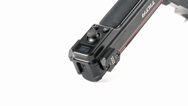 A hátsó kezelőfogantyún található Joystick teljes körű vezérlést biztosít az RS 2 Gimbal fej felett, az ujjkerék pedig lehetővé teszi a DJI vezeték nélküli fókuszmotor vagy a Tilta Nucleus M és Nano vezérlését.
