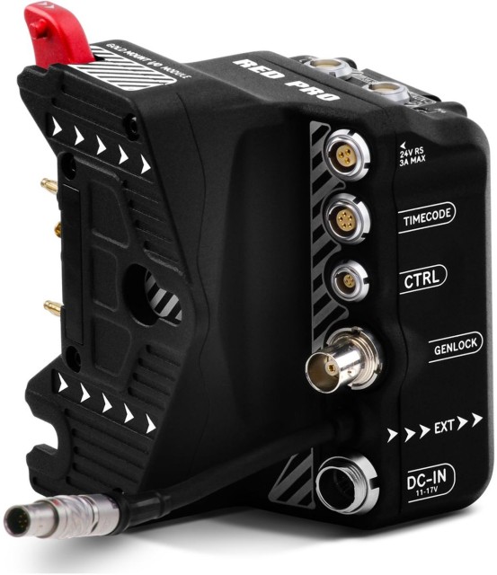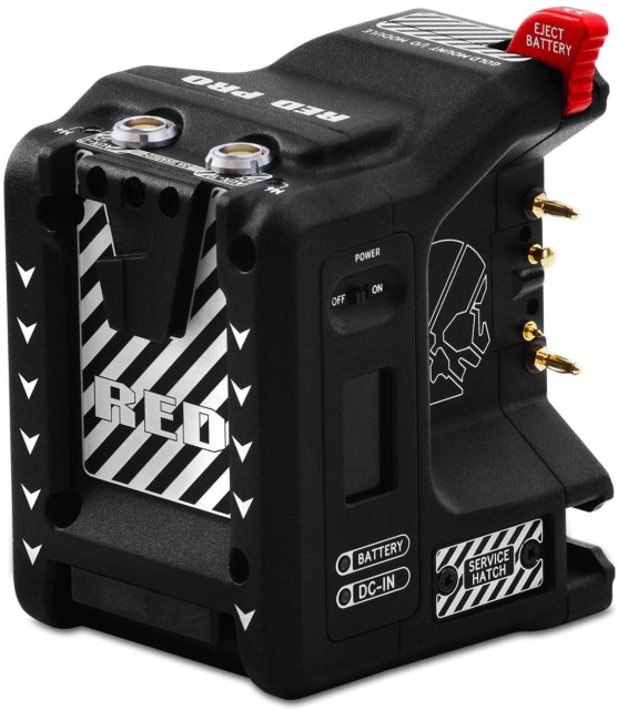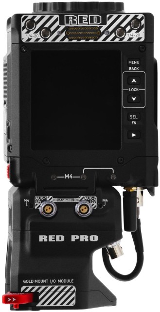 Az opcionális RED Pro I/O Gold Mount modul kibővíti a RED Komodo-X és RED V-Raptor kamerák bemeneteit/kimeneteit, és a szabványos Gold Mount akkumulátorokkal is kompatibilis. A modul közvetlenül a kamera hátulján található Micro V-Lock lemezhez és a 9 tűs Ext porthoz csatlakozik, és a következőket kínálja: