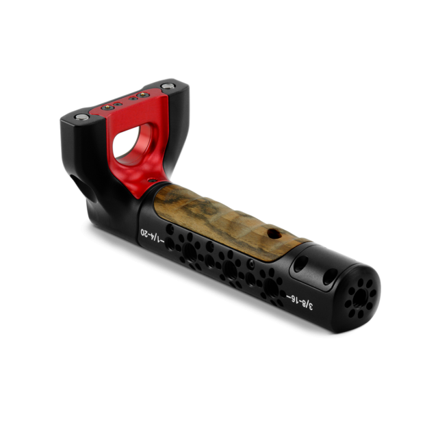 A V-RAPTOR™ felső fogantyú külön Start/Stop gombbal, ergonomikus Bocote fa betétekkel és több 3/8-16 és 1/4-20 rögzítési ponttal rendelkezik. Ezen kívül tartalmaz 1", 3" és 5" felső fogantyú hosszabbító darabokat, könyökdarabot és egy 15 mm-es monitortartót.