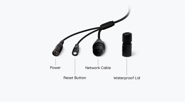 - RJ45 10M/100Mbps csatlakozó - Tápellátás - Micro SD kártya foglalat - Beépített mikrofon - Reset gomb