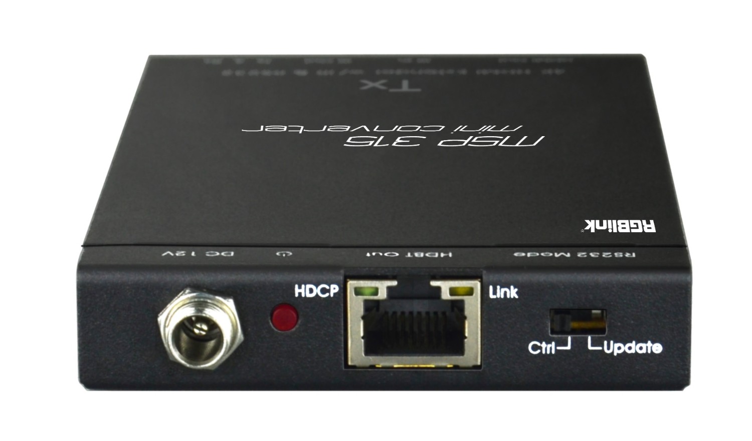 Az RGBlink MSP 315-4 RX egy HDBaseT HDMI vevő, amely 1080p jeleket 70 m-ig, 4K 2160p@30Hz jeleket pedig 40 m-ig továbbít CAT-5e vagy CAT-6a kábelen keresztül. HDCP 2.2 kompatibilis, kétirányú IR és RS232 kommunikációt, valamint PoE-t támogat az egyszerű egyoldalas tápellátáshoz.