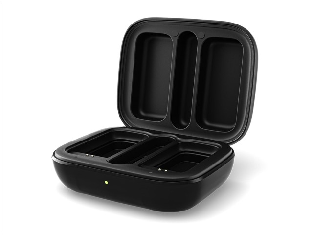 töltőállomásegy védőhuzat mindkét adó és a vevő számára. Ugyanakkor töltőállomásként is működik, amely szállítás vagy forgatási szünet alatt biztosítja a távadó feltöltését. A mellékelt USB-C kábellel táplálható, vagy a feltöltéshez használhatja a belső akkumulátort, amely képes a készlet összes alkatrészének kétszeri teljes feltöltésére.