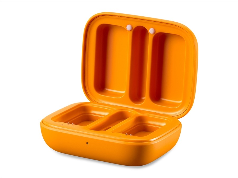 töltőállomásegy védőhuzat mindkét adó és a vevő számára. Ugyanakkor töltőállomásként is működik, amely szállítás vagy forgatási szünet alatt biztosítja a távadó feltöltését. A mellékelt USB-C kábellel táplálható, vagy a feltöltéshez használhatja a belső akkumulátort, amely képes a készlet összes alkatrészének kétszeri teljes feltöltésére.