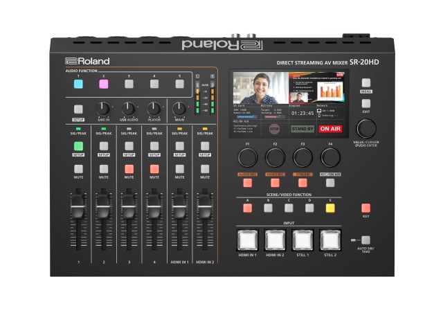 A Roland SR-20HD Direct Streaming AV Mixer egy nagy teljesítményű és hordozható audio/video kapcsoló, amely megkönnyíti a livestreaming bevezetését egy vállalkozásban vagy szervezetben minimális képzéssel. Egy egységben egyesíti a videokapcsolót, az audiomixert, az előnézeti képernyőt, a felvevőt/lejátszót és a streaming kódolót. A műsorvezetők közvetlenül a YouTube Live-ra, a Facebookra, a Twitch-re vagy RTMP-n keresztül egy CDN-re streamelhetnek számítógép nélkül.