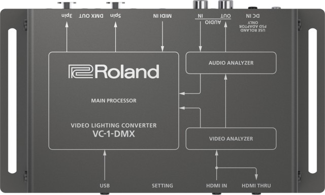 A VC-1-DMX automatikusan generálja a DMX-világítási beállítások vezérlőparancsait a videó- és hangforrások bemenete alapján, így nincs szükség külön világításkezelőre. A szín és a fényerő az aktuális videókép alapján változik, a fények és a tükörgömbök pedig a zene tempójával szinkronban működnek. Ha pedig mélyebbre szeretne merülni, a VC-1-DMX támogatja a hardveres vezérlőfelületekről, elektronikus hangszerekről és számítógépes produkciós szoftverekről származó külső MIDI-működést.