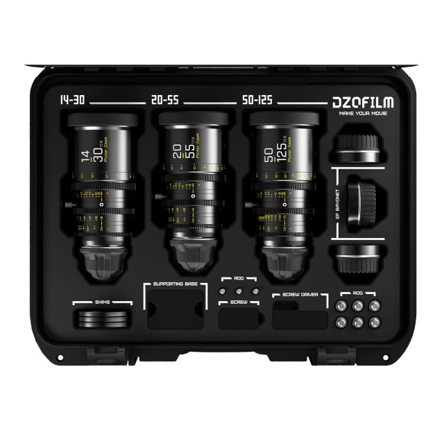 A DZOFilm üres kemény tokja egy kemény héjú tok, amely a három 14-30mm, 20-55mm és 50-125mm Pictor zoomobjektívhez, valamint számos objektív tartozékhoz illeszkedik. A tok belseje lézervágott habbetéttel rendelkezik, amely minden egyes objektívet bölcsőbe helyez és véd. Külön nyílások vannak a tartozékok, a shim-készletek és az objektívtartók számára.