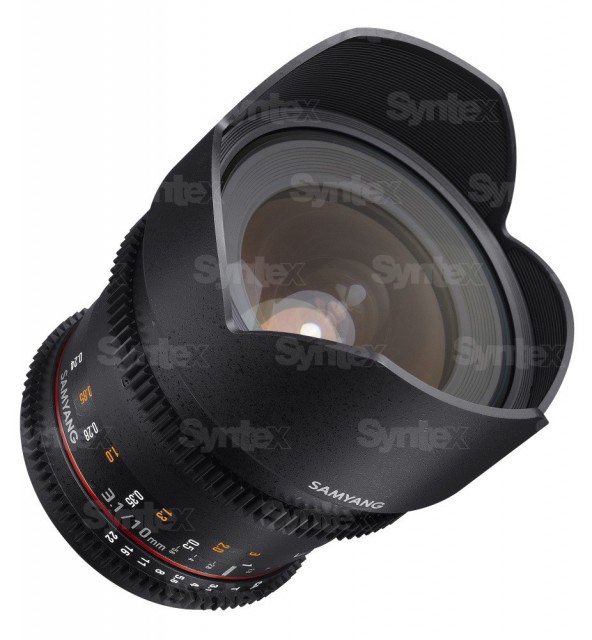 A Samyang 10mm T3.1 VDSLR ED AS NCS SK II objektívet gondosan tervezték professzionális filmek és videók készítéséhez. A levehető rekeszgyűrűvel simán és csendesen változtathatja a rekeszértéket.Atávolságskála és a "T" értékek az objektív mindkét oldalán jelölve vannak a könnyű kezelhetőség érdekében Canon EF objektívhez