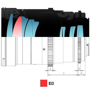 Az objektív kialakítása 11 lencsetagból áll 7 csoportban, köztük 1 extra alacsony fényszórású (ED) üvegből, a lehető legnagyobb felbontás érdekében. Az Ultra Multi Coating (UMC) bevonatot a fényáteresztés optimalizálására és a nem kívánt tükröződések és árnyékok csökkentésére használják.Ez az optikai kialakítás 0,8 m-es minimális fókusztávolságot biztosít a nagyon közeli témák megörökítéséhez. A lebegő optikai elemek kialakítása a lehető legtöbb fényt biztosítja, és a torzítás és a szférikus aberráció csökkentésével növeli a felbontást
