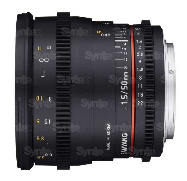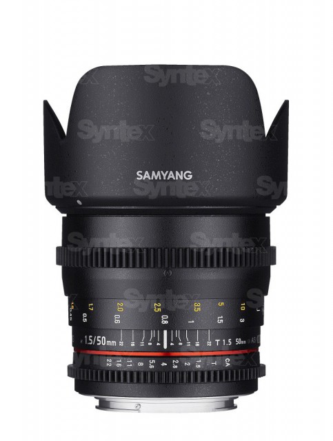 A Samyang 50mm T1.5 VDSLR AS UMC objektív Sony E foglalathoz egy gyors, manuális fókusszal rendelkező objektív. Ez az objektív kompatibilis a full frame és az APS-C formátumú E mount fényképezőgépekkel, és APS-C érzékelőkkel 35 mm-esnek megfelelő gyújtótávolságot biztosít. T1,5 maximális rekesznyílással rendelkezik a hatékony gyenge fényviszonyok és a sekély mélységélesség-szabályozás érdekében, valamint 8 lamellás rekesznyílással a vonzó bokeh érdekében. A filmes és videós alkalmazásokhoz optimalizált fókusz- és rekeszvezérlő gyűrűk az iparági szabványnak megfelelő fogaskerékkel rendelkeznek, amelyek interfészt biztosítanak a hagyományos utófókuszálással való munkavégzéshez. A rekeszállító gyűrűt is lecsiszolták, ami lehetővé teszi a sima rekeszhúzást. Ezenkívül az objektív tubusára egyértelmű rekesz- és távolságjelzések vannak nyomtatva, amelyek oldalirányban mutatnak, hogy megkönnyítsék a fókuszhúzóval történő vezérlést.