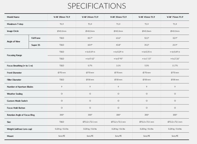 A Samyang V-AF filmes AF objektívcsalád a magas képminőségre összpontosít, miközben minimalizálja a testméretet és a súlyt (<300g), hogy a kamerastabilizátorokkal és drónokkal való használat maximálisan egyszerű legyen. A termékcsalád többféle fix fókusztávolságot kínál (20, 24, 35, 45, 75, 100) azonos méretekkel és illeszkedő színnel, fogazott fókuszgyűrűvel…