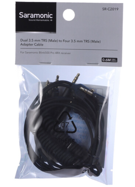 A szinkronizált, több eszközös audio munkafolyamatokhoz tervezett Saramonic SR-C2019 egy nagy teljesítményű, spirálos elosztókábel, amely a 2,4 GHz-es vagy UHF vezeték nélküli vevőkészülékek kompakt, kettős 3,5 mm-es TRS kimeneteit négy független 3,5 mm-es TRS hím csatlakozóvá alakítja, így tökéletesen alkalmas különálló kamerák, terepi felvevők vagy keverőcsatornák táplálására jel megosztás vagy keresztbeszélés nélkül. Két derékszögű bemeneti csatlakozója alacsony profilú, feszültségmentes csatlakozást biztosít a kamerák hot shoe-jára vagy állványaira szerelt vevőkészülékekhez, míg a négy egyenes kimeneti csatlakozó teljes sztereó vagy kettős mono jeleket továbbít – általában a vevőkészülék 1-et a 1. és 2. (L/R) kimenetekhez, a vevőkészülék 2-t pedig a 3. és 4. kimenetekhez – ideális a Blink 500 Pro B8 quad rendszerhez vagy hasonló kettős vezeték nélküli konfigurációkhoz. A spirálos szakasz 14–60 cm-re nyújtható, így rugalmas hatótávolságot biztosít túlzott lazaság nélkül, az aranyozott érintkezők pedig maximális vezetőképességet, minimális zajt és hosszú távú tartósságot garantálnak nedves vagy nagy mozgású környezetben. Könnyű és összegabalyodásnak ellenálló, az SR-C2019 elengedhetetlen kellék dokumentumfilm-stábok, élő streamerek és rendezvényproducerok számára, akiknek megbízható, plug-and-play többmikrofonos elosztásra van szükségük a helyszínen.
