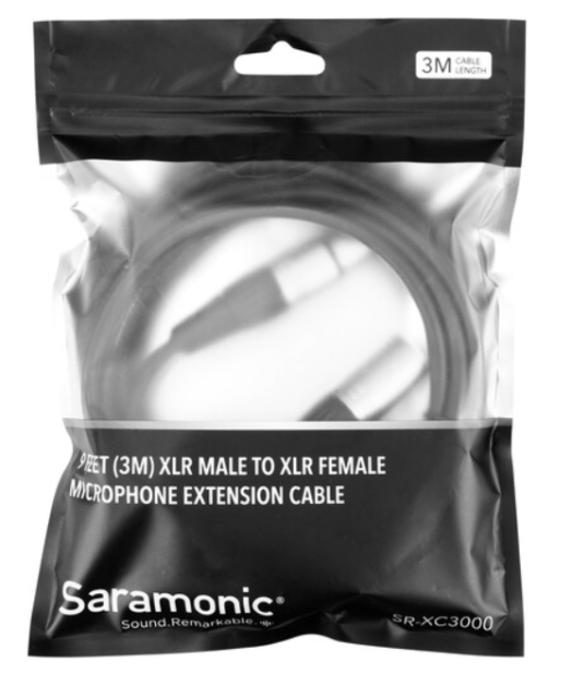 A Saramonic SR-XC3000 egy professzionális minőségű, 3 méter hosszú, szimmetrikus XLR mikrofonkábel, aranyozott 3 tűs XLR csatlakozókkal (nő-férfi), amely megbízható, alacsony zajszintű kapcsolatot biztosít mikrofonok és keverők, előerősítők, audio interfészek vagy felvevők között. Spirálisan tekert réz árnyékolással, iker PVC belső árnyékolással…