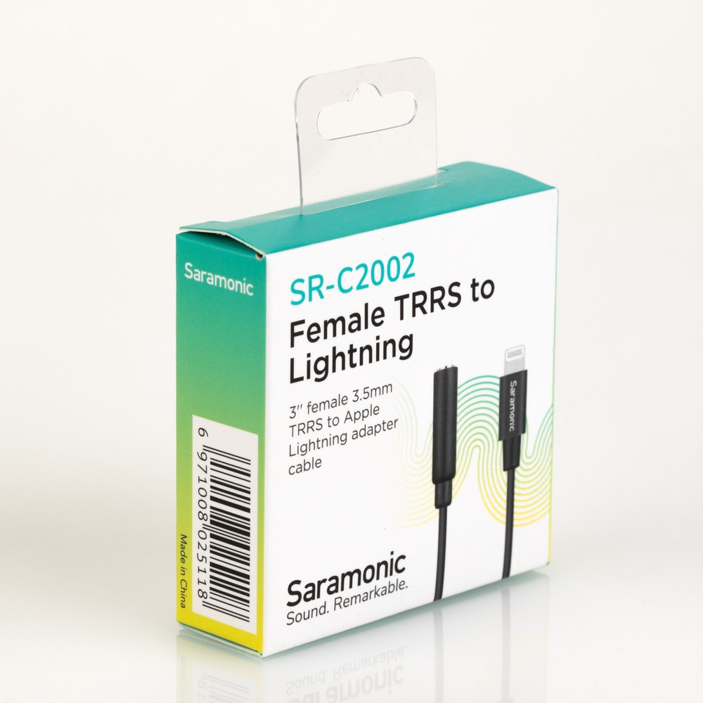 A Saramonic SR-C2002 egy kompakt, kiváló minőségű audio adapter kábel, amelyet kifejezetten Lightning csatlakozóval rendelkező iPhone-ok és iPad-ek számára terveztek, egyik végén aranyozott hím Lightning csatlakozóval, a másik végén pedig 3,5 mm-es TRRS aljzattal. Lehetővé teszi a TRRS mikrofonok, vezeték nélküli vevők és audio keverők zökkenőmentes felvételét közvetlenül kompatibilis iOS alkalmazásokba, miközben biztosítja a mikrofonokhoz szükséges csatlakozási tápellátást, és teljes értékű fejhallgató-kimeneteként is funkcionál vezetékes fejhallgatókhoz, beleértve a mikrofonbemenet és a távirányítók támogatását is – ideális videofelvételekhez, élő közvetítésekhez és utazás közbeni hangjavításhoz a jelminőség romlása nélkül.