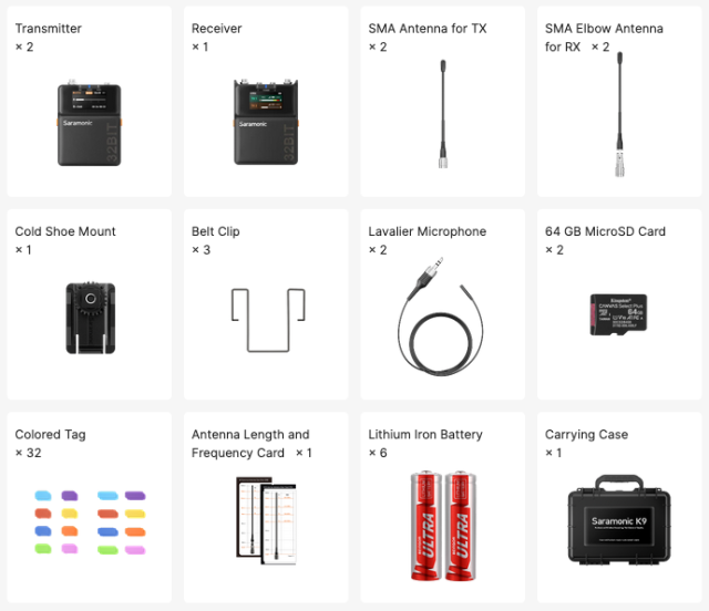 A Saramonic K9 egy kétcsatornás digitális UHF vezeték nélküli audiorendszer, amelyet professzionális filmkészítéshez terveztek. 32 bites lebegőpontos beépített felvételi funkcióval, pontos időkód-szinkronizálással és széles dinamikatartománnyal rendelkezik, ami kivételes hangminőséget biztosít. A rendszer robusztus, miniatűr lavalier mikrofonokat tartalmaz, és stabil, zavarásmentes teljesítményt nyújt.