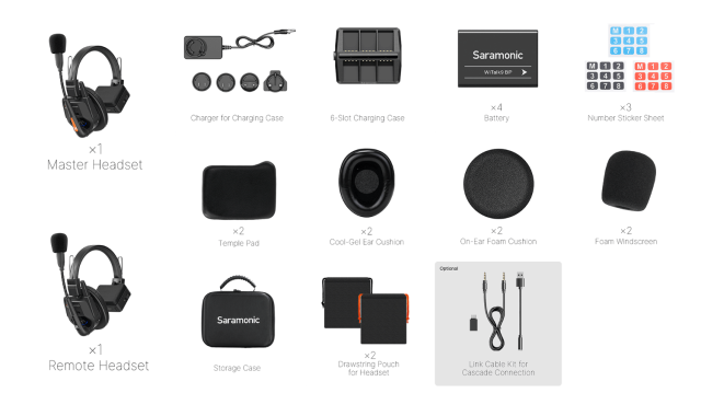 A Saramonic WiTalk9 WT2S egy 9 személyes, hub-mentes, teljes duplex vezeték nélküli interkom rendszer, amelyet a zökkenőmentes csapatkommunikációhoz terveztek. A készlet egy master és négy távoli fejhallgatót tartalmaz, amelyek kézmentes működést és akár 500 m-es hatótávolságot biztosítanak. A ClearTalk™ zajszűrés és a DECT technológia segítségével kristálytiszta, biztonságos és megbízható kommunikációt biztosít még zajos környezetben is.