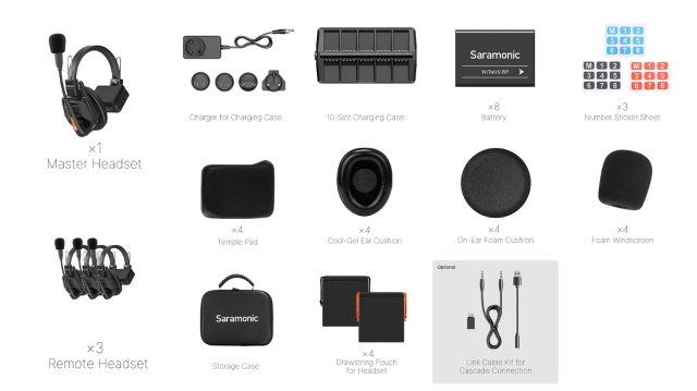 A Saramonic WiTalk9 WT4S egy 9 személyes, hub-mentes, teljes duplex vezeték nélküli interkom rendszer, amelyet a zökkenőmentes csapatkommunikációhoz terveztek. A készlet egy master és négy távoli fejhallgatót tartalmaz, amelyek kézmentes működést és akár 500 m-es hatótávolságot biztosítanak. A ClearTalk™ zajszűrés és a DECT technológia révén kristálytiszta, biztonságos és megbízható kommunikációt biztosít még zajos környezetben is.