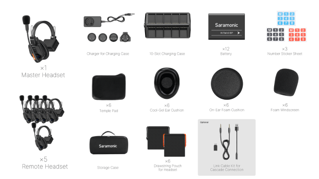 A Saramonic WiTalk9 WT6S egy 9 személyes, hub-mentes, teljes duplex vezeték nélküli interkom rendszer, amelyet a zökkenőmentes csapatkommunikációhoz terveztek. A készlet egy master és négy távoli fejhallgatót tartalmaz, amelyek kézmentes működést és akár 500 m-es hatótávolságot biztosítanak. A ClearTalk™ zajszűrés és a DECT technológia révén kristálytiszta, biztonságos és megbízható kommunikációt biztosít még zajos környezetben is.
