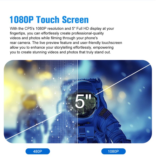 Az integrált vezeték nélküli zárvezérléssel és az USB-C kompatibilitással a CP5 racionalizálja a fényképezőgép munkafolyamatát. A kompakt kialakítás 3,5 mm-es portot tartalmaz a hangmegfigyeléshez, microSD-kártyahelyet a felvételek tárolásához, valamint Bluetooth-távvezérlő támogatást a jobb használhatóság érdekében. Ez a monitor ideális a professzionális videósok, vloggerek és filmkészítők számára, akiknek kiváló minőségű hordozható felügyeleti megoldásra van szükségük.