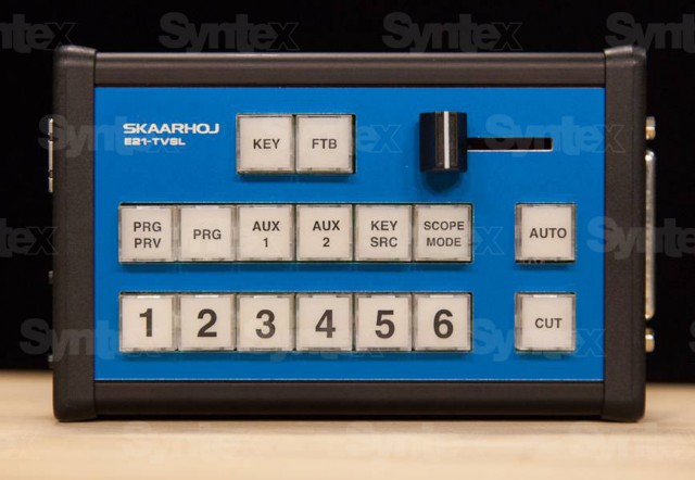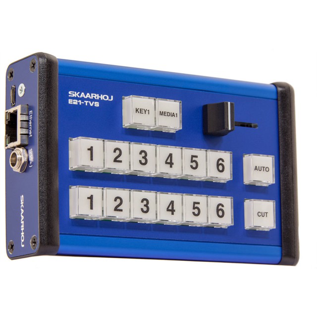 E21-TVS modely mají 2 řady tlačítek po 6 pro volbu vstupů, Cut a Auto tlačítka a 2 uživatelská tlačítka.