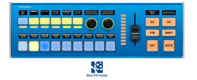 A Blue Pill Inside és NKK gombokkal ellátott SKAARHOJ Live Fly Controller egy nagy teljesítményű, közepes méretű műsorszóró vezérlő, amelyet olyan élő produkciós környezetekhez terveztek, ahol precíz, testreszabható vezérlésre van szükség. Akár nyolc kamerás produkciók irányítására is alkalmas, rendkívül rugalmas felületet kínál, amely alkalmas váltásra, hangvezérlésre és több eszköz kezelésére olyan platformokon, mint a vMix, a TriCaster és az ATEM rendszerek.