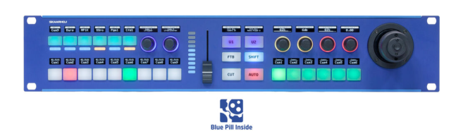 A Blue Pill Inside funkcióval ellátott SKAARHOJ Rack Pro 3 egy kompakt, 1RU-s rackbe