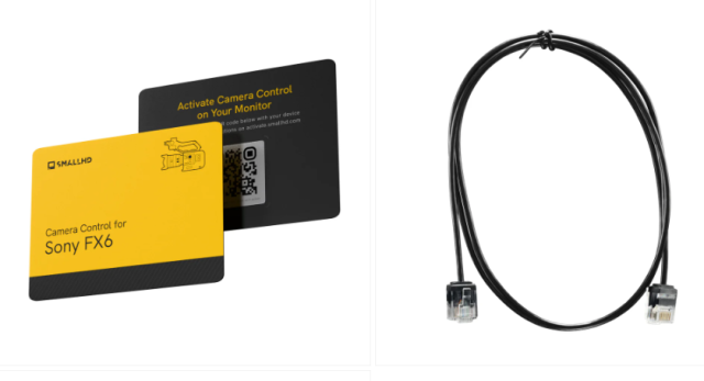 A készlet tartalmaz egy szoftverlicenc-letöltőkártyát, valamint a beállításhoz szükséges vezérlőkábeleket. A SmallHD monitoron történő aktiválás után a kameravezérlő licenc véglegesen ahhoz az eszközhöz van kötve, és nem ruházható át.