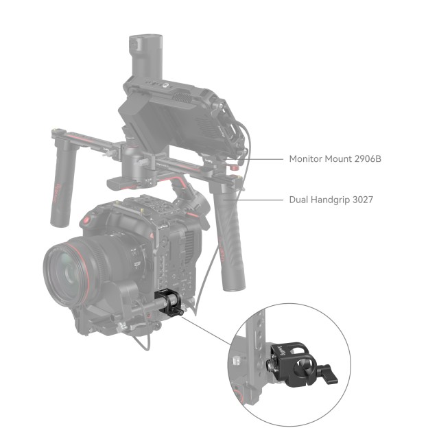 ASmallRig 15mm ARRI Locating Single Rod Clamp 4171 úgy van kialakítva, hogy egy ARRI 3/8''-16-os rögzítőcsavarral rögzíthető legyen a fogantyúhoz, ketrechez, lemezhez, és egy hüvelykujjas gombbal rögzítse a 15mm-es egyetlen rudat a követő fókusz, mikrofon, monitor stb. rögzítéséhez.