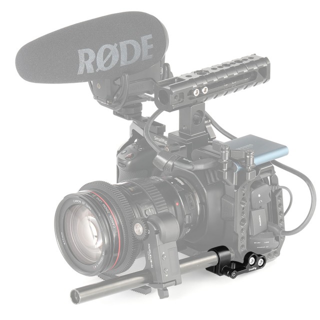 SmallRig 15mm Single Rod Clamp for BMPCC 4K & 6K Cage 2279 egy alacsony profilú rúdrögzítő. A BMPCC 4K és 6K modellekhez tervezték, hogy rögzíteni lehessen a follow focus-t. A SmallRig 2203, CVB2254 és CVB2255 cage-ekkel működik, a bal alsó sarkához két 1/4 csavarral rögzítve. Egy 15 mm-es rúd olyan follow focus motorok, mint a Tilta Nucleus Nano, PD MOVIE és REDROCK rögzíthetők a kamerarighez. A rúdrögzítő nem zavarja a SmallRig Cable Clamp 2246, a HDMI kábel vagy a SmallRig Side NATO Handle 2187 fogantyút.