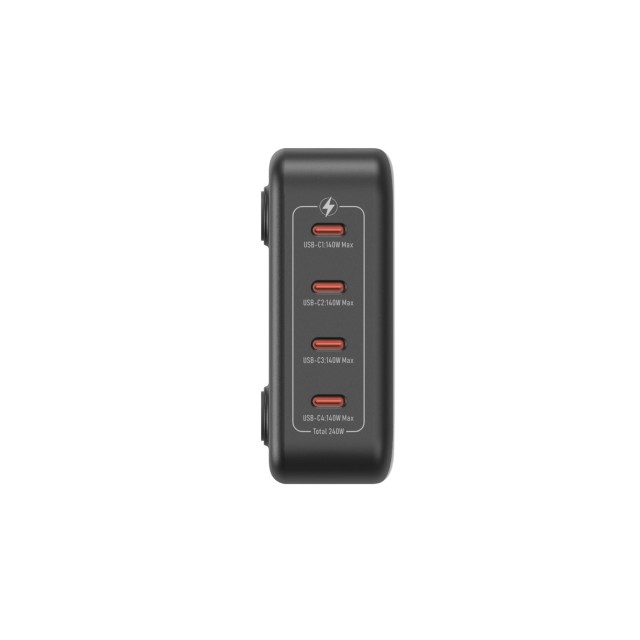 1. Nagy teljesítmény: A töltő 240 W összteljesítmény mellett a PD3.1 használatával egyetlen portonként akár 140 W-os kimeneti teljesítményt is támogat, így nagy teljesítményű eszközöket támogat.