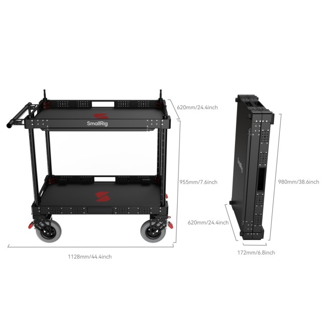 A repülőgép-űrhajózási minőségű alumíniumból és ipari minőségű anyagokból tervezett kocsit egyetlen stábtag mindössze 5 perc alatt összeszerelheti vagy összecsukhatja. Az összecsukható kialakítás mindössze 17,2 cm magasra tömöríthető a könnyű szállítás érdekében, így egyaránt alkalmas városi stúdiókban vagy távoli helyszíneken történő forgatásokra.