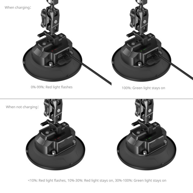 A beépített 2000 mAh-s akkumulátorral ellátott tapadókorong támogatja a QC gyors töltést (5 V/2 A USB-C-n keresztül) és mindössze 45 perc alatt teljes mértékben feltölthető, így akár 30 órányi folyamatos működést biztosít.