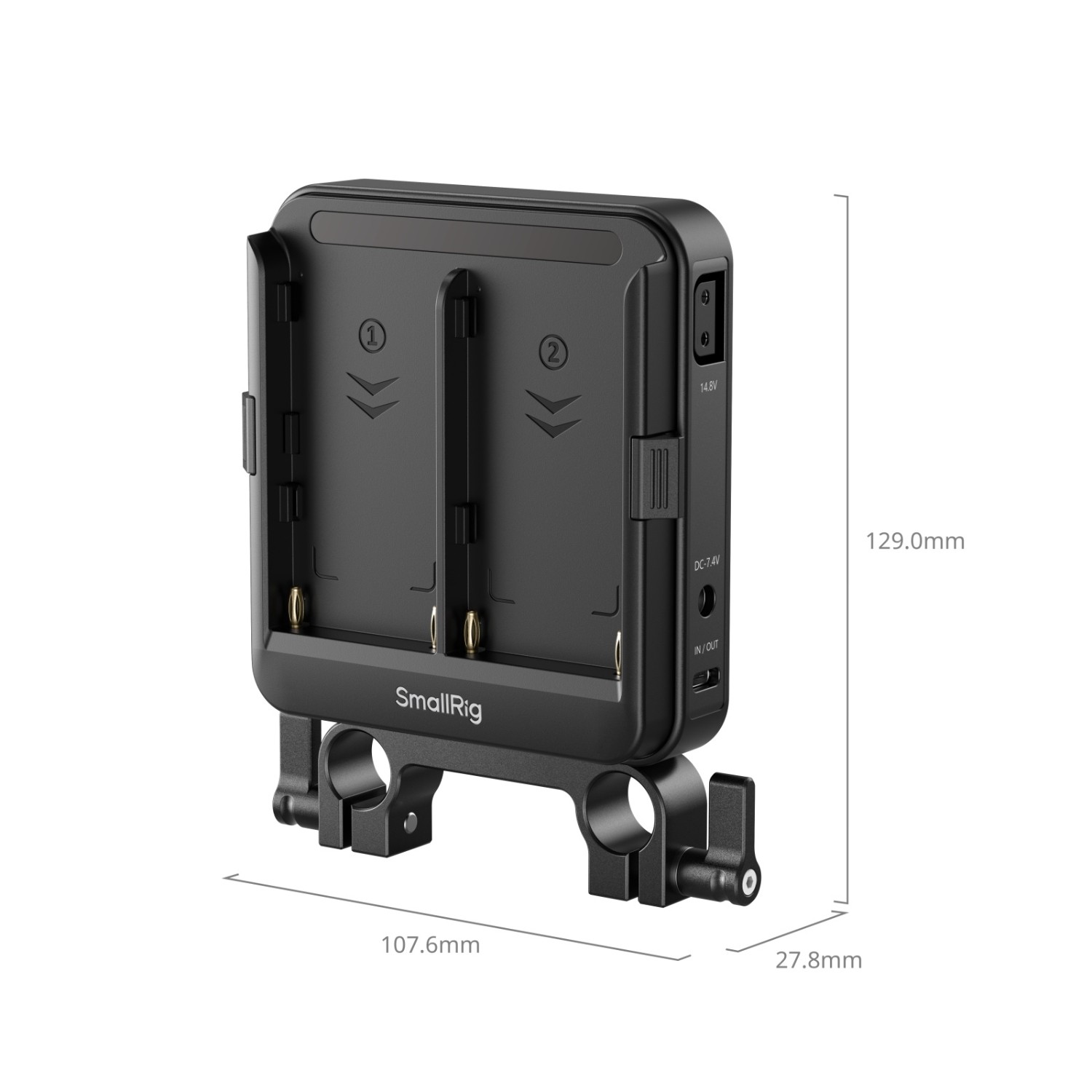 A SmallRig adapterlemez-készlet NP-F típusú akkumulátorokhoz 15 mm-es LWS rudakhoz (UPS támogatással) 5537 folyamatos áramellátást biztosít tükör nélküli fényképezőgépek, monitorok és egyéb, NP-F sorozatú akkumulátorokat használó berendezések számára. Ez a lemez V-mount lemezzel, 15 mm-es kettős rúdbilinccsel vagy az alsó 1/4"-20 menetes furattal szerelhető fel, és egy vagy két NP-F akkumulátort képes befogadni a berendezés áramellátásához. Ha két akkumulátor van behelyezve, a hot-swap funkció lehetővé teszi az egyik akkumulátor cseréjét a csatlakoztatott eszközök leállítása nélkül, biztosítva ezzel a szünetmentes áramellátást (UPS).