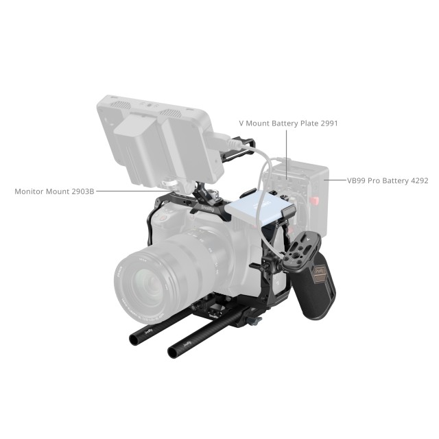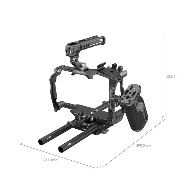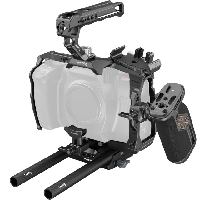 A SmallRig Advanced Cage Kit a Blackmagic Design Cinema Camera 6K 4575 kamerához úgy lett kialakítva, hogy kényelmes, alacsony szögben történő felvételkészítést biztosítson az alkotóknak, védje a kamerát, és többféle tartozékbővítési lehetőséget kínáljon. A készlet tartalmaz egy ketrecet, egy felső fogantyút, egy HDMI és USB-C kábelrögzítőt, egy SSD rögzítő konzolt, egy objektívtartó adaptertámaszt, két 15 mm-es szénszálas rudat és egy alaplapot. A hárompontos rögzítési rendszer két 1/4"-20-as csavarral rögzíti a kamerát az alján és egy 1/4"-20-as csavarral a tetején, míg a beépített szilikonbetétek megakadályozzák a karcolódást. A ketrec akadálytalan hozzáférést biztosít a fényképezőgép összes interfészéhez, a kártyahelyekhez, a flip képernyőhöz és az akkumulátortartó rekeszhez.
