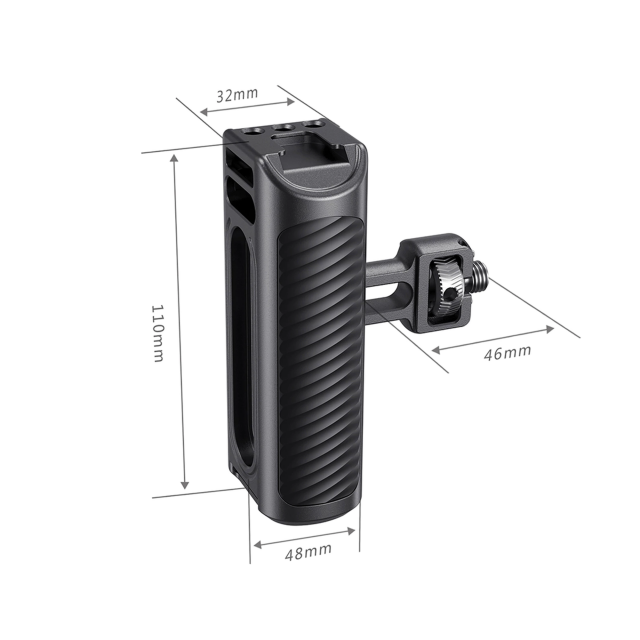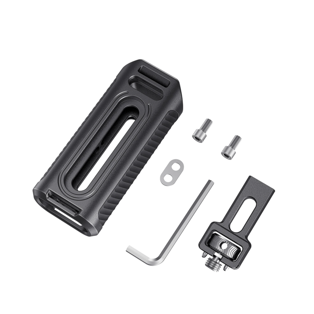 A SmallRig HSS2426-ot úgy tervezték, hogy kényelmes kézi felvételek elkészítését tegye lehetővé az operatőrök számára. Az alján található integrált imbuszkulcs segítségével a markolat felfelé és lefelé állítható az operatőr igényei szerint. Ha a markolatot a cage másik oldalán szeretné használni, az imbuszkulcs segítségével vegye le a markolat csatlakozó fémrészét, és fordítsa át. A markolat az oldalán lévő Arri furatokkal rögzíthető a kamera cage-hez. Egy vakusínnel és három 1/4"-20-as menetes furattal rendelkezik, amelyek lehetővé teszik a különböző tartozékok felszerelését. A mindössze 226 g súlyú, alumínium test csúszásgátló szilikongél borítással rendelkezik, hogy kényelmesen és biztonságosan használhassa kézi felvételeket készítése során. A biztonság növelése érdekében a a markolat kézi hevederrel is kiegészíthető.