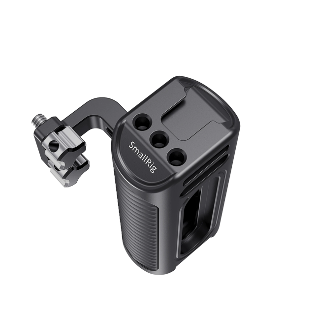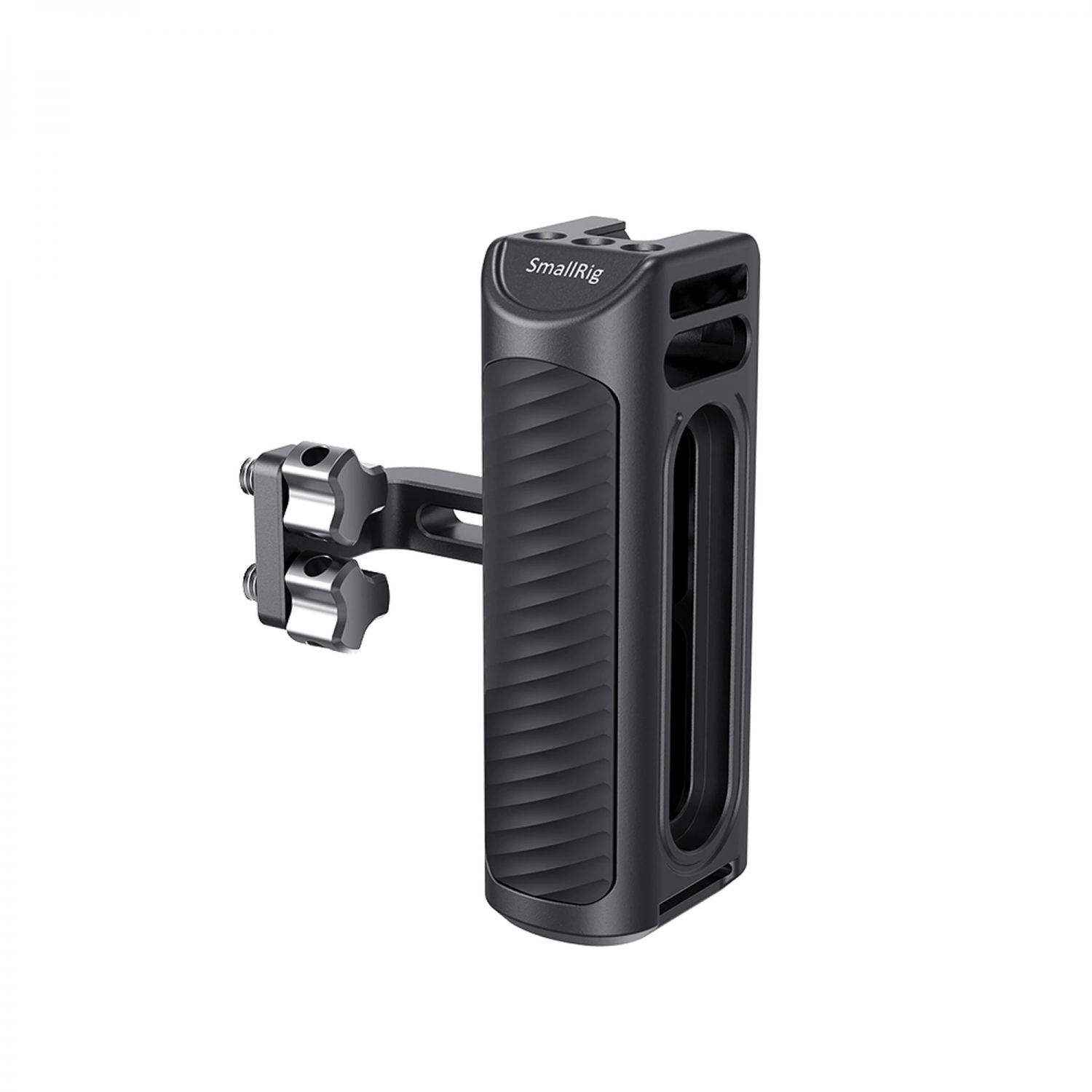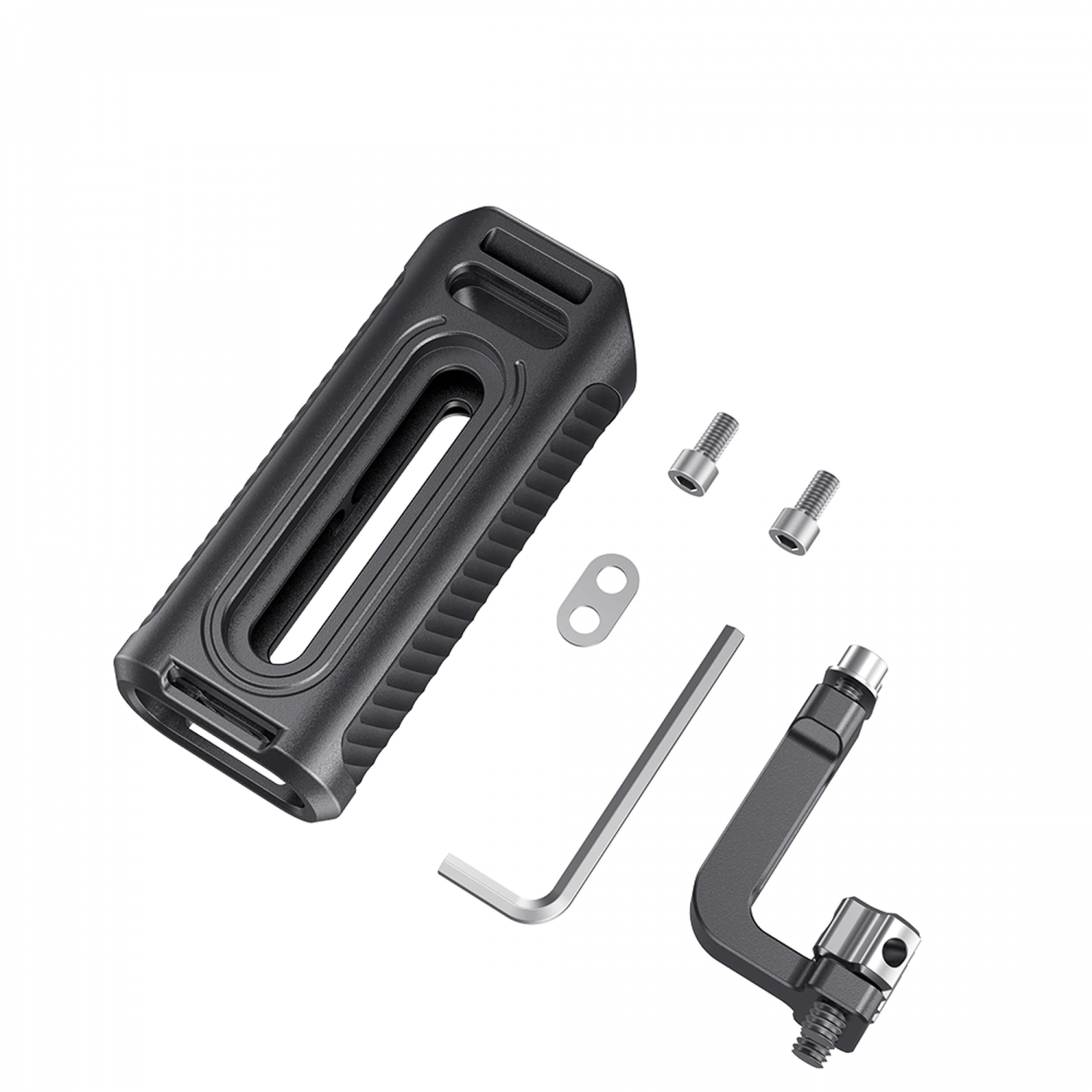 A SmallRig HSS2425 alumínium univerzális oldalsó markolatot úgy tervezték, hogy a videósok számára kényelmes kézi felvételkészítést biztosítson. Az alján található beépített hatszög segítségével a fogantyú felfelé és lefelé állítható az Ön igényeinek megfelelően. Ha a markolatot a cage másik oldalán szeretné használni, a hatlapfejjel távolítsa el a fogantyú csatlakozó fémrészét, és váltson irányt. A markolat két 1/4"-20-as csavarral a kamera cage bal vagy jobb oldalára szerelhető. Egy vakusín és három 1/4"-20-as menetes furatot tartalmaz, amelyek lehetővé teszik a tartozékok felszerelését. A mindössze 220 g súlyú, alumínium teste csúszásmentes szilikongél bevonattal rendelkezik, amely kényelmes és könnyű kézben tartást biztosít. Ez a markolat egy kézi hevederrel is használható a biztonság növelése érdekében.