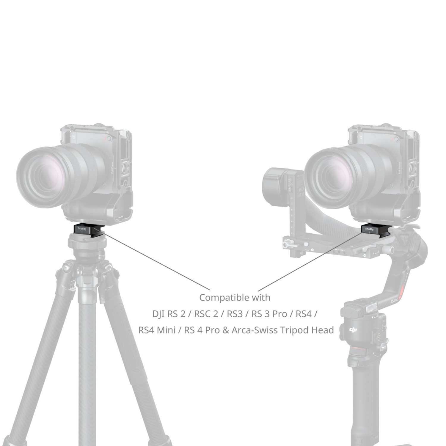 A lemez kompatibilis az Arca típusú állványokkal és a DJI RS sorozatú stabilizátorokkal (beleértve az RS 2, RSC 2, RS 3, RS 3 Pro, RS 4, RS 4 Pro és RS 4 Mini modelleket), megkönnyítve a hatékony átállást az állvány és a gimbal beállítások között, javítva ezzel a munkafolyamatot. A könnyű felszerelés és eltávolítás érdekében kettős fejű csavarkulcs is tartozik a csomaghoz.