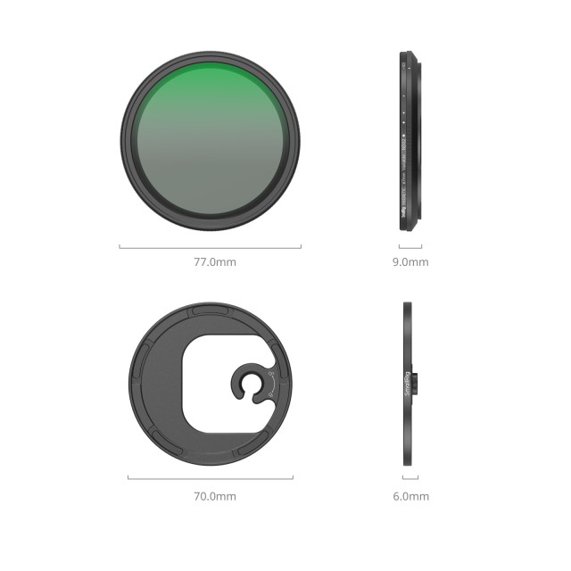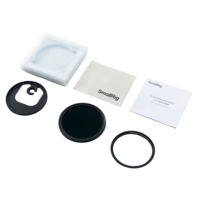 SmallRig felcsatolható VND szűrőkészlet ND2-ND32 (1-5 Stop) M-mount szűrőadapterrel 67mm 4724 Az állítható expozíciócsökkentéssel rendelkező VND szűrő révén a felhasználók rugalmasan használhatják a videózásban, ésszerű expozíciós paraméterbeállításokat biztosítva számukra, és professzionálisabb videofelvételeket készíthetnek. A többszörösen bevonatos optikai üveg megbízható optikai minőséget biztosít, így a rögzített képek vignettálástól mentesek. A mágneses rögzítési rendszer gyors és hatékony élményt nyújt a felhasználóknak a szűrők felszereléséhez és cseréjéhez. A készlet tartalmaz egy M-bajonettes adaptergyűrűt az iPhone sorozatú ketrecek M-bajonettes hátlapjához való közvetlen integráláshoz. A menetes adaptergyűrűvel felszerelve a szűrő 67 mm-es fényképezőgép-objektívre szerelhető, így kényelmes mágneses szűrőszerelési élményt nyújt a fényképezőgép-objektívek számára.
