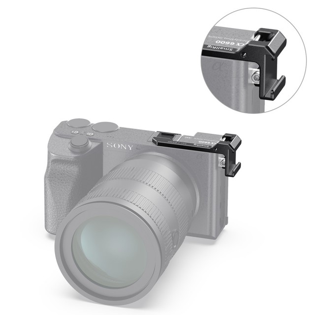 A SmallRig bal oldali cipőfoglalat áthelyező lemez a Sony a6600 fényképezőgéphez BUC2497 úgy lett kialakítva, hogy a kamera cipőfoglalatát a tetejéről a bal oldalra helyezze át a mikrofon vagy a fény számára anélkül, hogy akadályozná a Sony A6600 kihajtható képernyőjét. Az adapter egy m2,5-ös csavarral illeszkedik a fényképezőgép cipőtartójába és szíjnyílásába a további biztonság érdekében, hogy megakadályozza a csavarodást. Az alján gumipárnával rendelkezik, amely megakadályozza a karcolódást. Az adapter oldalán található egy nyílás a kézi- vagy vállpánt számára. A cipőadapter különösen hasznos, ha a kamera előlapjáról készít vlogging vagy szelfi felvételeket.