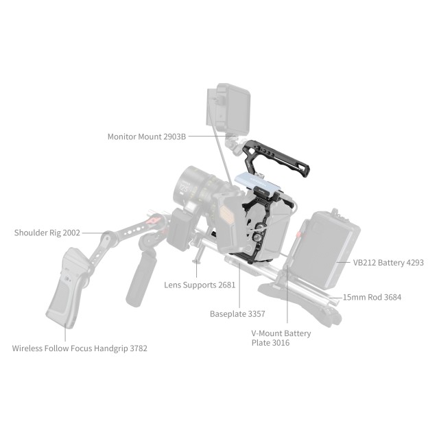 A SmallRig Basic Cage Kit for Blackmagic Design Cinema Camera 6K 4574 úgy lett kialakítva, hogy az alkotók számára kényelmes, alacsony szögben történő felvételkészítést biztosítson, védje a kamerát, és többféle tartozékbővítési lehetőséget kínáljon. A készlet tartalmaz egy cage-et, egy felső markolatot, egy HDMI és USB-C kábelrögzítőt, egy SSD rögzítő konzolt és egy objektívadapter-tartót. A hárompontos rögzítési rendszer két 1/4"-20-as csavarral az alján és egy 1/4"-20-as csavarral a tetején rögzíti a kamerát, a beépített szilikonbetétek pedig megakadályozzák a karcolódást. A cage akadálytalan hozzáférést biztosít a fényképezőgép összes interfészéhez, a kártyahelyekhez, a flip képernyőhöz és az akkumulátorrekeszhez.