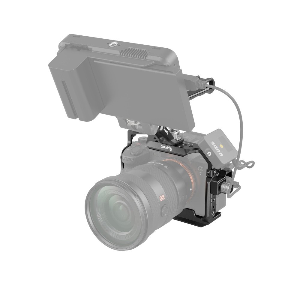 A SmallRig Cage Kit for Sony Alpha 7R V / 7 IV / 7S III / 7 V 3668B úgy lett kialakítva, hogy megkönnyítse az alacsony szögű felvételeket és megvédje a kamerát, miközben széles körű kiegészítő rögzítési lehetőségeket kínál. Tartalmaz egy keretet, egy HDMI kábelbilincset és egy felső fogantyút. A felső fogantyú kényelmes és megkönnyíti a hordozást alacsony szögű felvételek készítésekor.