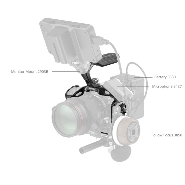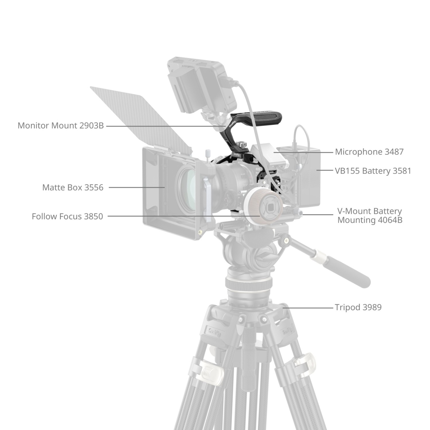 Az ergonómikus felső fogantyú kényelmes fogást biztosít, így az alacsony szögű felvételek és a könnyű hordozás is egyszerűvé válik. A keret több rögzítési ponttal rendelkezik, beleértve 1/4"-20 menetes lyukakat, 1/4"-20 rögzítő lyukakat, 3/8"-16 menetes lyukakat, ARRI 3/8"-16 rögzítő lyukakat, hideg cipő rögzítést, Arca-kompatibilis interfészt, QD aljzatot és heveder nyílásokat. Ezek a sokoldalú lehetőségek lehetővé teszik a felhasználók számára monitorok, mikrofonok, állványok, follow focus rendszerek, fogantyúk és egyéb kiegészítők rögzítését, így széles körű videokészítési igényeket támogatnak.
