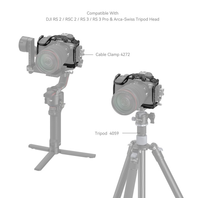 ASmallRig "Black Mamba" kameraketrec Canon EOS R6 Mark II 4161 a kamera védelmére és a tartozékok rögzítésére szolgál. A Canon EOS R6 Mark II-t egy alsó 1/4"-20-as csavarral és két oldalsó rögzítő adapterrel rögzíti, a karcolásokat megakadályozó gumipárnákkal. A "Black Mamba" dizájnnal rendelkező ketrec teljes hozzáférést biztosít a fényképezőgép összes gombjához és többféle tartozék rögzítési lehetőségéhez. Ezek közül az ARRI 3/8"-16-os helymeghatározó furat támogatja a 3765 / 2165C felső fogantyút és a 2903B monitortartót; az 1/4"-20-as menetes furatok a 4016-os oldalsó fogantyúhoz illeszkednek; a beépített hidegcipő tartó tartja a mikrofont, a LED-videólámpát; a váll- és csuklópántfuratok pedig a 3848-as kézi pántot vagy a PSC2428-as vállpántot. Az alján van egy beépített Arca-Swiss gyorskioldó lemez a DJI RS 2 / RSC 2 / RS 3 / RS 3 Pro kardánokhoz vagy Arca típusú állványokhoz a kézi, kardán és állvány üzemmód közötti gyors váltáshoz, valamint egy QD rögzítés a gyorskioldó vállpánt csathoz. Emellett egy kétvégű csavarhúzót is mellékeltek a könnyű összeszereléshez és szétszereléshez.