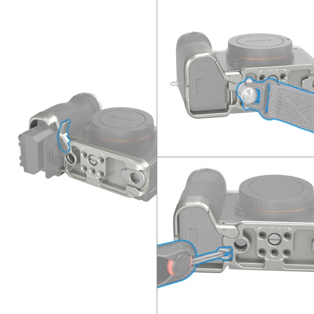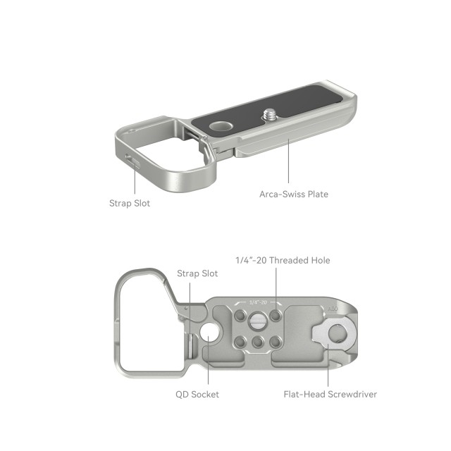 A SmallRig alsó rögzítőlemez Sony Alpha 7C II / Alpha 7CR (ezüst) 4439 a markolatérzet javítására és a kamera aljának védelme mellett az állványra vagy kardánra történő gyors rögzítésre szolgál. A fényképezőgépet egy 1/4"-20-as csavarral és a megemelt peremmel rögzítő alaplemez párnákkal is rendelkezik, amelyek megakadályozzák a karcolásokat és a csavarodást. Az elemtartó ajtónál lévő csuklókarja jobban illeszkedik a fényképezőgép ívéhez, és a nagyobb kényelem érdekében helyet hagy a kisujjnak. Az alján található Arca-Swiss gyorskioldó lemez támogatja a DJI RS 2 / RSC 2 / RS 3 / RS 3 Pro kardánokat, valamint a DJI RS 2 / RSC 2 gimbal gyorskioldó lemezét és az Arca-Type Quick Release Plate 3154-et. Az alján QD aljzatok találhatók, amelyek kompatibilisek egy QD vállpánttal, és a 3848-as kézi heveder számára is tartogat derékszíjfuratokat. Emellett egy mágneskulcsot is tartalmaz a könnyű szétszereléshez és összeszereléshez.