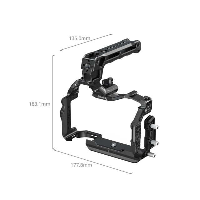 A SmallRig Cage Basic Kit for Canon EOS R6 Mark III / R6 Mark II 5955 célja, hogy javítsa a kézi felvételek stabilitását, hordozhatóságát és a kiegészítők bővíthetőségét. A készlet tartalmaz egy keretet, egy USB-C és HDMI kábelbilincset, valamint egy felső fogantyút.